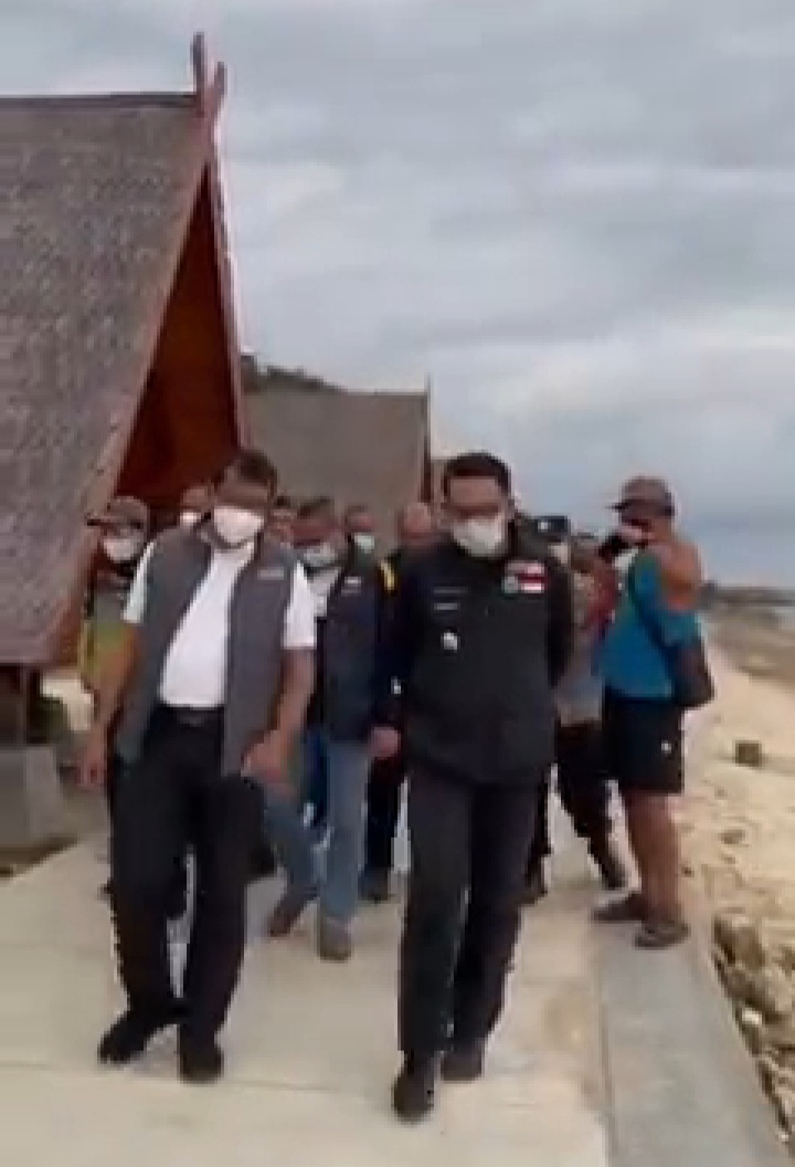 GARUT, JABAR | Gubernur Jawa Barat Ridwan Kamil meresmikan penataan obyek wisata Pantai Sayang Heulang di Desa Mancagahar, Kecamatan Pameungpeuk, Kabupaten Garut, Minggu (20/2/2022).