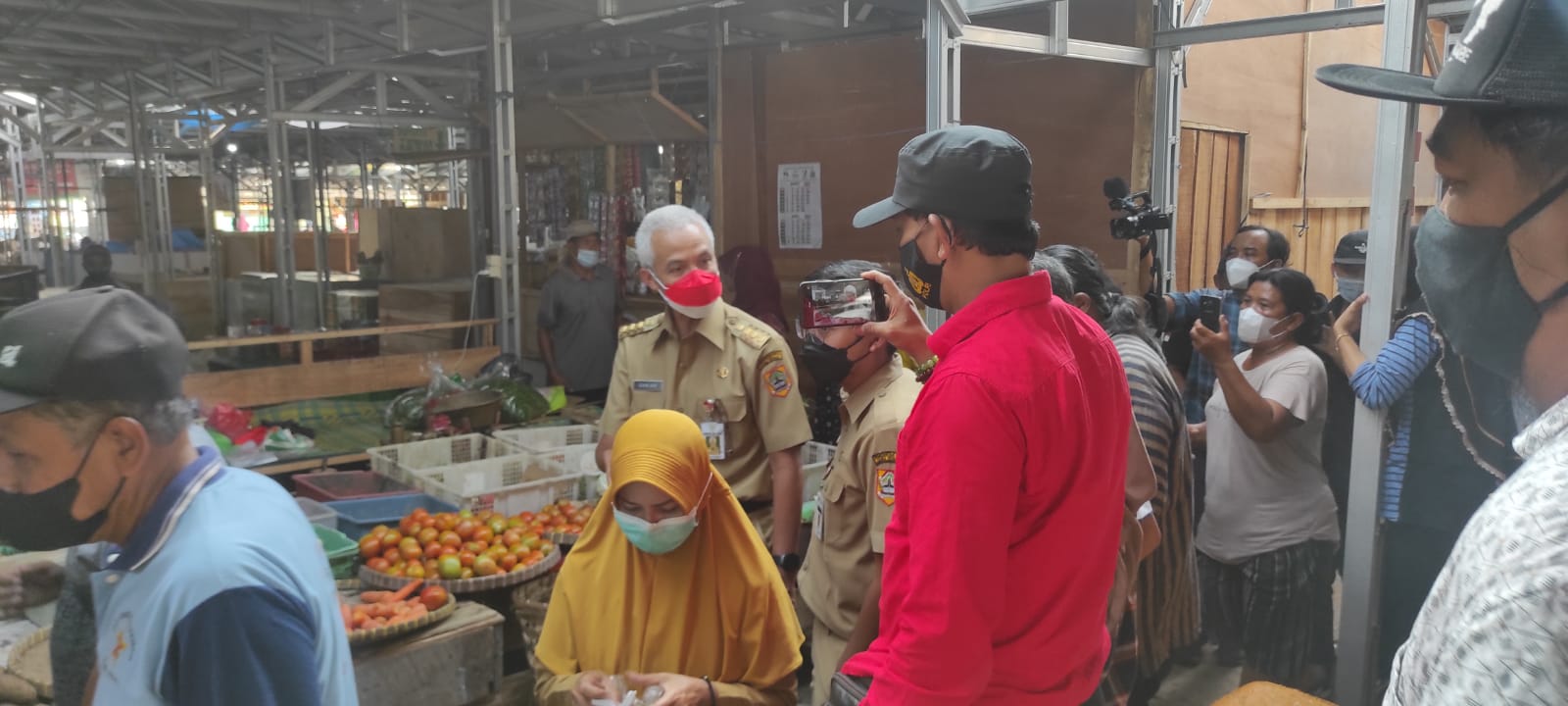 Ganjar juga terlihat membeli beberapa dagangan para pedagang Pasar Relokasi sambil menyerap aspirasi dari para pedagang.