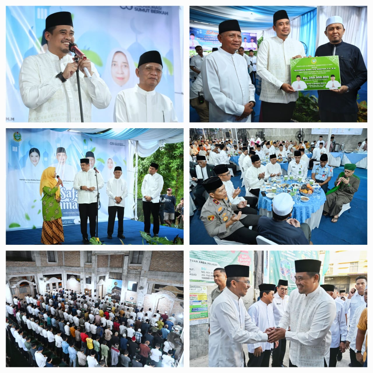 “Saya minta kita datang ke masjid-masjid yang masih dibangun. Agar kehadiran kami membawa berkah bagi kita semua, terutama untuk masyarakatnya. Dan di sini saya membawa para Pimpinan OPD (organisasi perangkat daerah), supaya ikut juga memberikan sumbangsih untuk masjid ini,” kata Bobby Nasution didampingi Wakil Gubernur Surya.