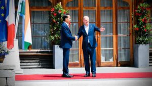 ELMAU,JERMAN | Presiden Joko Widodo tiba di lokasi KTT G7 di Schloss Elmau, Jerman, disambut oleh Kanselir Jerman Olaf Scholz, Senin siang, 27 Juni 2022. Dalam sesi penyambutan resmi oleh Kanselir Jerman tersebut, Presiden hadir bersama pemimpin dari negara mitra G7 yaitu Presiden Argentina Alberto Fernández, Perdana Menteri India Narendra Modi, Presiden Senegal Macky Sall, dan Presiden Afrika Selatan Cyril Ramaphosa.