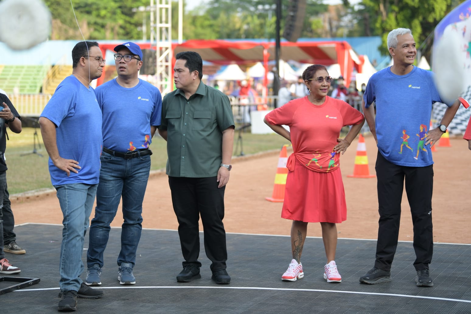 “Ya, alhamdulillah, bersama Pak Erick Pak Ganjar, dan Pak Anies kita memainkan berbagai keceriaan. Yang penting bukan menang kalah, yang penting adalah kebersamaan, bahwa udah lama kita nggak merayakan pas pandemi, sekarang kita rame dan alhamdulillah, kita berprestasi,” kata Kang Emil, sapaan akrab Ridwan Kamil.