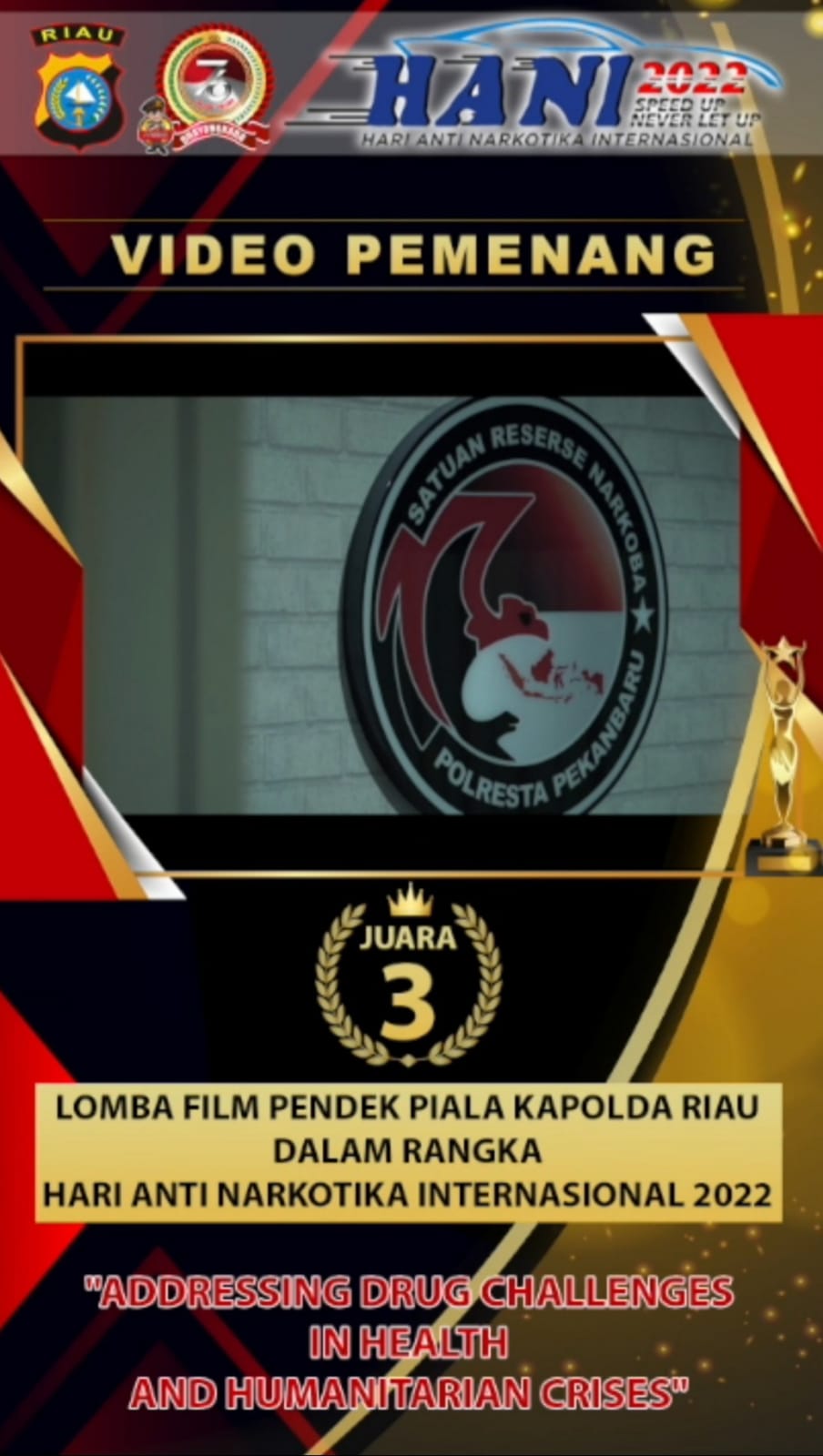 Lomba film pendek ini merupakan rangkaian kegiatan Polda Riau dalam memperingati Hari Anti Narkotika Internasional (HANI) 2022.