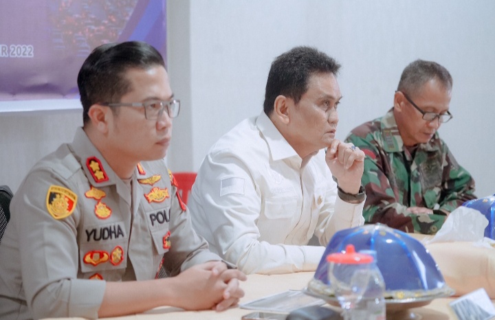 BARRU | Bupati Barru Ir. H. Suardi Saleh. M. Si., bersama Kapolres Barru AKBP Yudha Wirajati S. IK. MH, menghadiri Rapat Koordinasi Lintas Sektoral dalam rangka kesiapan pengamanan Natal dan Operasi Lilin Tahun 2022 dan tahun baru 2023 tingkat menteri secara Virtual via Zoom, diruang Humas Mapolres Barru, pada Jumat (16/12/2022).