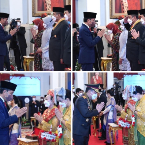 JAKARTA | Sejumlah 127 tokoh yang berasal dari tokoh masyarakat, ilmuwan, mantan pejabat kemiliteran, serta para tenaga medis dan tenaga kesehatan, dianugerahkan tanda kehormatan Bintang Mahaputera Pratama, Bintang Budaya Parama Dharma, dan Bintang Jasa oleh Presiden Joko Widodo, pada hari Jumat, 12 Agustus 2022, di Istana Negara, Jakarta.