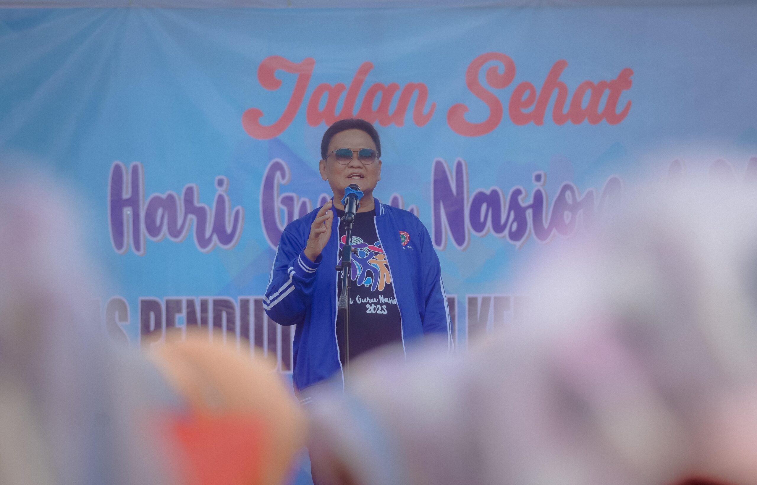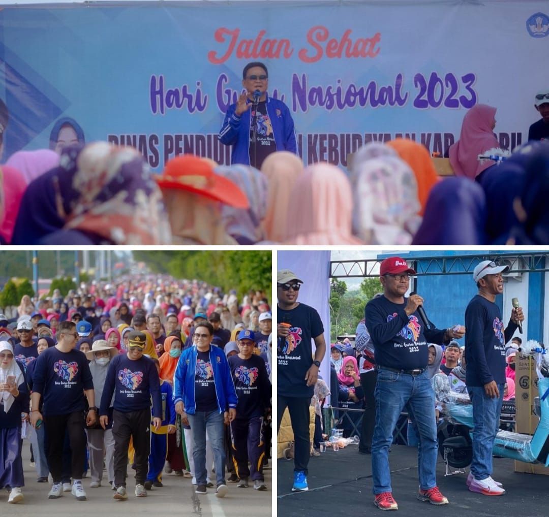 Saat melepas peserta jalan sehat, Bupati Suardi Saleh mengapresiasi pelaksanaan jalan santai yang merupakan bagian dari berbagai kegiatan yang dilaksanakan dalam rangka Hari Guru Nasional tahun 2023.