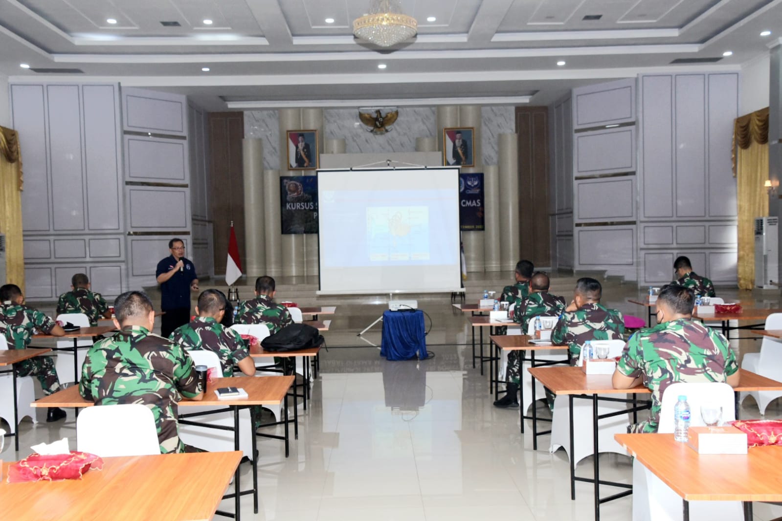 JAKARTA | Memasuki Hari ke 3 sertifikasi selam One Star (A1) Pejabat Utama Korps Marinir melaksanakan tiga materi kelas meliputi yang Pertama Aspek Fisiologi dan Medis Selam, Kedua Perencanaan Penyelaman, Ketiga Dunia Bawah Air yang dilaksanakan di Gedung Graha Markas Komando Korps Marinir Jl.Prajurit KKO Usman Dan Harun No.40 Jakarta Pusat, Rabu (21/09/2022).