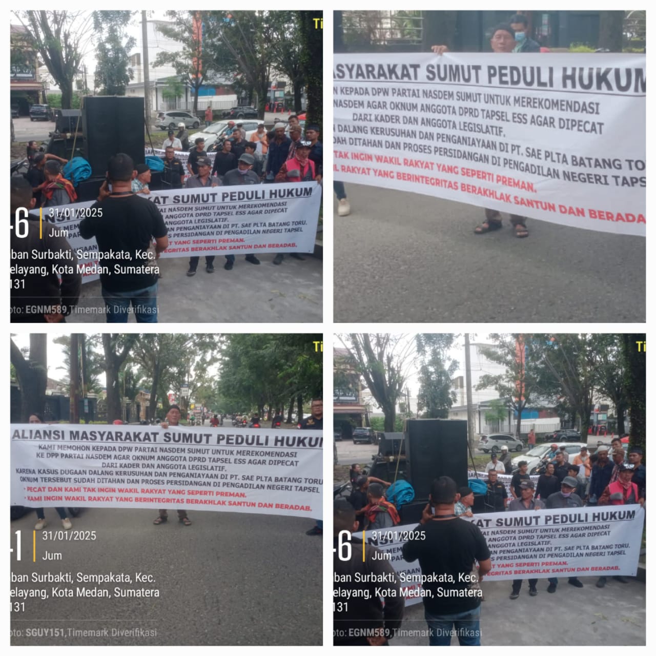 Mereka menuntut agar Hakim memberi tuntutan hukuman yang seberat-beratnya kepada oknum anggota Dewan Perwakilan Rakyat Daerah (DPRD) Tapanuli Selatan (Tapsel) EES dari Partai Nasdem yang terbukti telah melakukan perbuatan melanggar hukum.