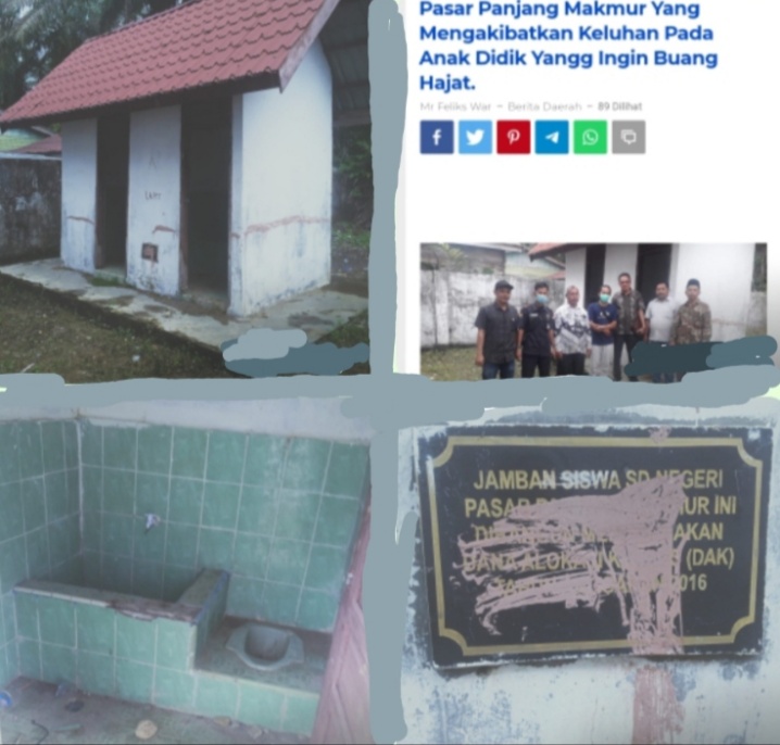 SUBULUSSALAM, ACEH | SD Negeri Pasar Panjang Makmur Kec. Simpang Kiri, Kota Subulussalam menjadi perbincangan hangat atas pengakuan salah seorang siswanya yang menyampaikan,bahwa MCK di sekolahnya Rusak dan berbau tak sedap,sehingga Mereka akhirnya BABK(Buang Air Besar /Kecil) sembarangan,”ujarnya melalui salah satu media Online pekan lalu, Senin (12/2/2022).