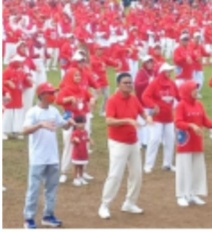 Senam Massal ini diikuti oleh ASN, TNI, Polri, Kejaksaan dan seluruh Aparat Negara lainnya serta Masyarakat Kabupaten Barru dengan memakai kostum merah putih sebagai simbol lambang negara Indonesia.