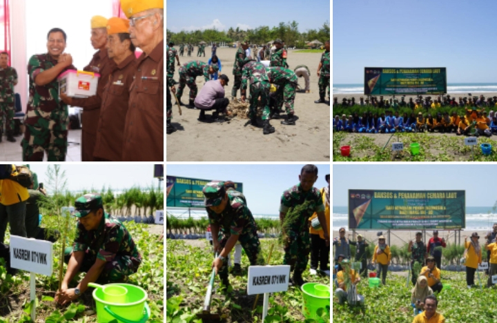 infoindonesiainews.com | CILACAP – Hijaukan Kawasan Pantai, Peringati Hari Juang TNI AD dan Hari Menanam Pohon Sedunia, Korem 071/Wijayakusuma Tanam Ribuan Pohon Cemara Laut Cilacap – Lestarikan kawasan wisata pantai Widarapayung di Desa Binangun Kecamatan Binangun Kabupaten Cilacap, dalam rangka memperingati Hari Juang TNI AD yang ke-78 dan hari menanam pohon sedunia tahun 2023, Korem 071/Wijayakusuma berkolaborasi bersama Dinas Kehutanan Provinsi Jawa Tengah Wilayah VI, menanam ribuan pohon penghijauan Cemara Laut. Kamis (14/12/2023).