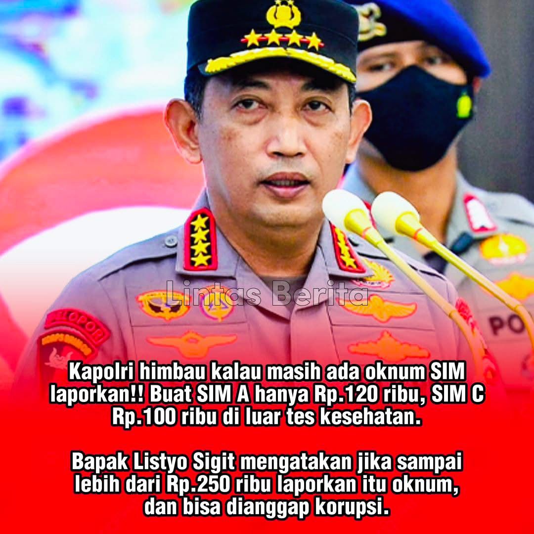 JAKARTA – Kapolri Jenderal Listyo Sigit Prabowo mengimbau masyarakat untuk tidak ragu melapor jika menemukan adanya pungutan liar dalam proses pembuatan Surat Izin Mengemudi (SIM).