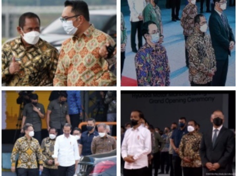 BEKASI |Plt Bupati Bekasi Akhmad Marjuki mendampingi Presiden Joko Widodo meluncurkan mobil listrik pertama yang dirakit PT Hyundai Motor Manufacturing Indonesia di Kabupaten Bekasi, Provinsi Jawa Barat, Rabu, 16 Maret 2022.
