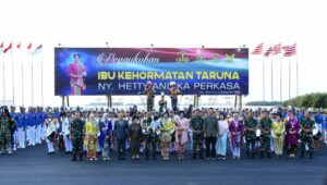 SURABAYA | Ny Hetty Andika Perkasa selaku Ketua Umum (Ketum) Dharma Pertiwi dikukuhkan menjadi Ibu Kehormatan Taruna Akademi TNI, ditandai dengan pengalungan Medali Kehormatan.