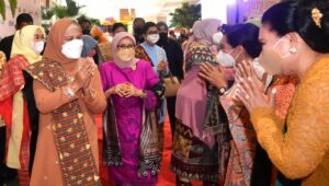 “Dengan mengucap Bismillahirrohmanirrohim, pada siang hari ini saya resmikan Pembukaan Pameran Kriyanusa Tahun 2022,” ucap Ibu Iriana saat membuka pameran tersebut.