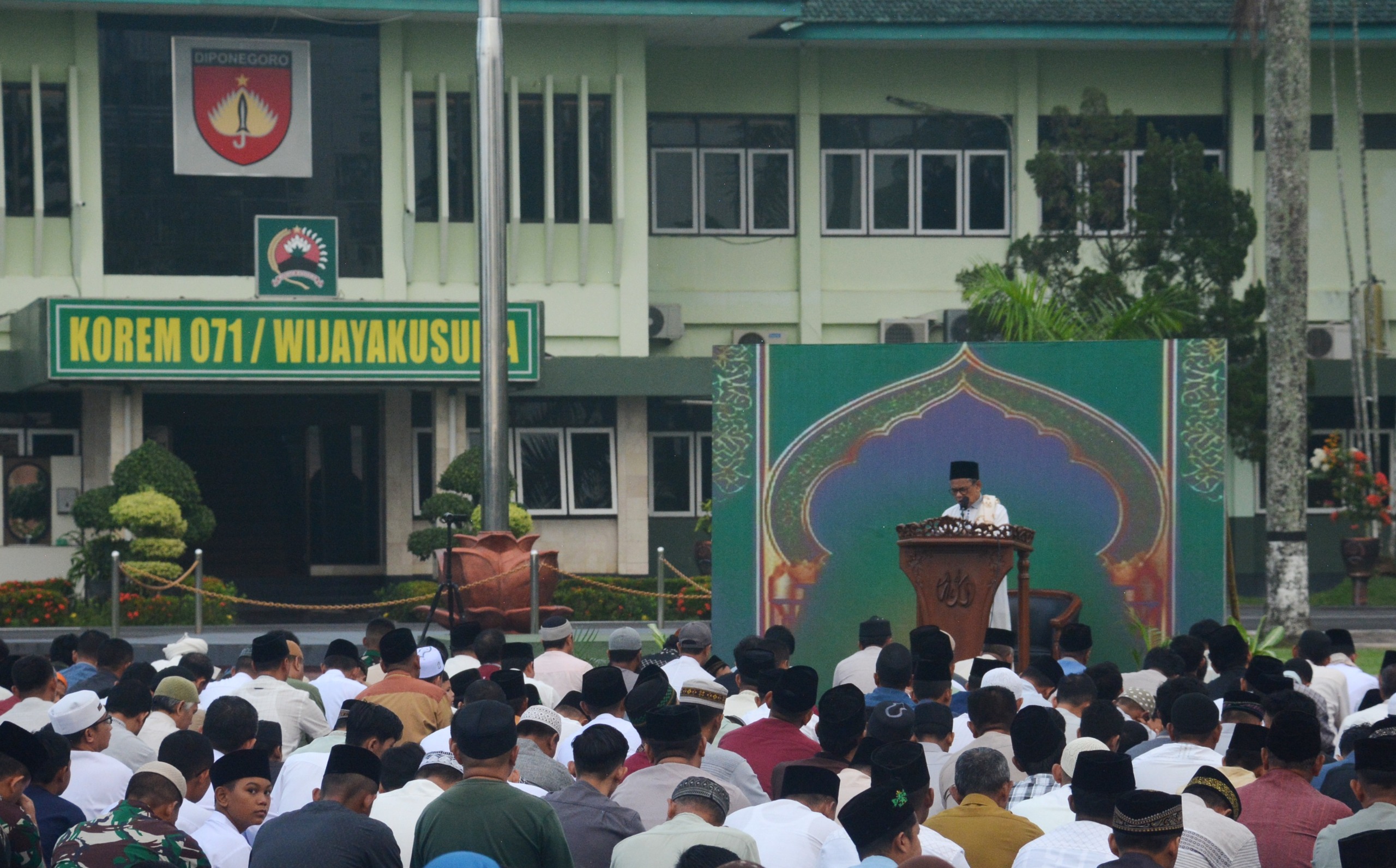 Sementara itu, pelaksanaan shalat Idul Adha yang dihadiri Danrem dan Ketua Persit Kartika Chandra Kirana Koorcab Rem 071 PD IV Diponegoro Ny. Dali Jamaludin beserta keluarga, Kasrem 071 Wijayakusuma Letkol Inf Catur Irawan beserta Wakil Ketua Persit Kartika Chandra Kirana dan keluarga, serta para Kasirem, para Dan Ka Balak Aju Kodam IV Diponegoro jajaran Korem 071 Wijayakusuma, dan para prajurit serta PNS Makorem 071 Wijayakusuma dan Balak Aju Kodam IV Diponegoro jajaran Korem, serta warga masyarakat sekitar.