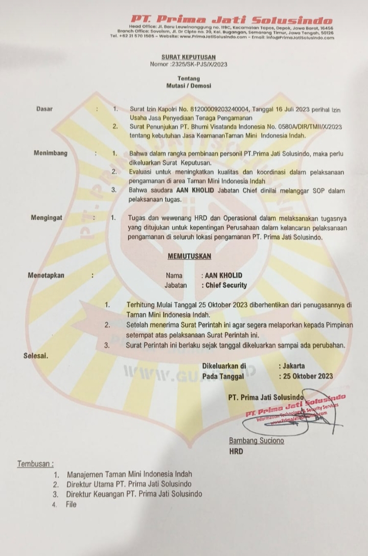 “Petugas tersebut sudah tidak bertugas di TMII,” katanya dalam keterangan tertulisnya.