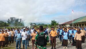“Kami sangat bangga dan berterima kasih karena kehadiran bapak-bapak TNI tidak hanya menjaga stabilitas keamanan saja, melainkan turut membantu mencerdaskan generasi muda khususnya di tanah Papua,” tutur Bapak Mes Kepno.
