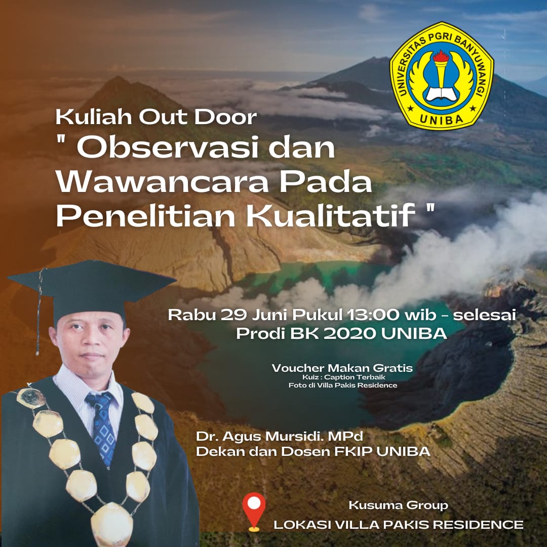 BANYUWANGI | Perkuliahan outdoor digelar program studi Bimbingan Konseling 2020 A di Home Stay Pakis Residence, salah satu metode sebagai inovasi belajar dengan materi riset kualitatif. Rabu 29/06/22
