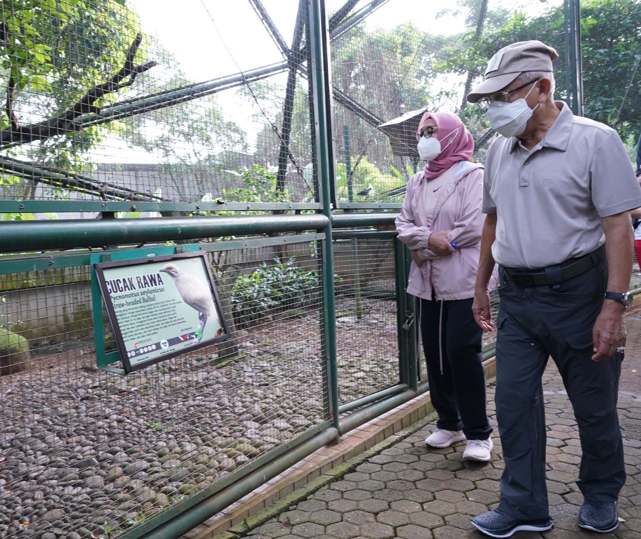 Usai mengitari area Taman Burung seluas 6 hektar dalam waktu kurang lebih 30 menit, Wapres dan Ibu Wury kemudian beristirahat di pinggir kolam di dalam kawasan Taman Burung. Di tempat ini, sambil menikmati sarapan ringan, Wapres dan Ibu Wury disuguhi atraksi perkenalan dengan satwa burung oleh petugas pemandu Taman Burung.