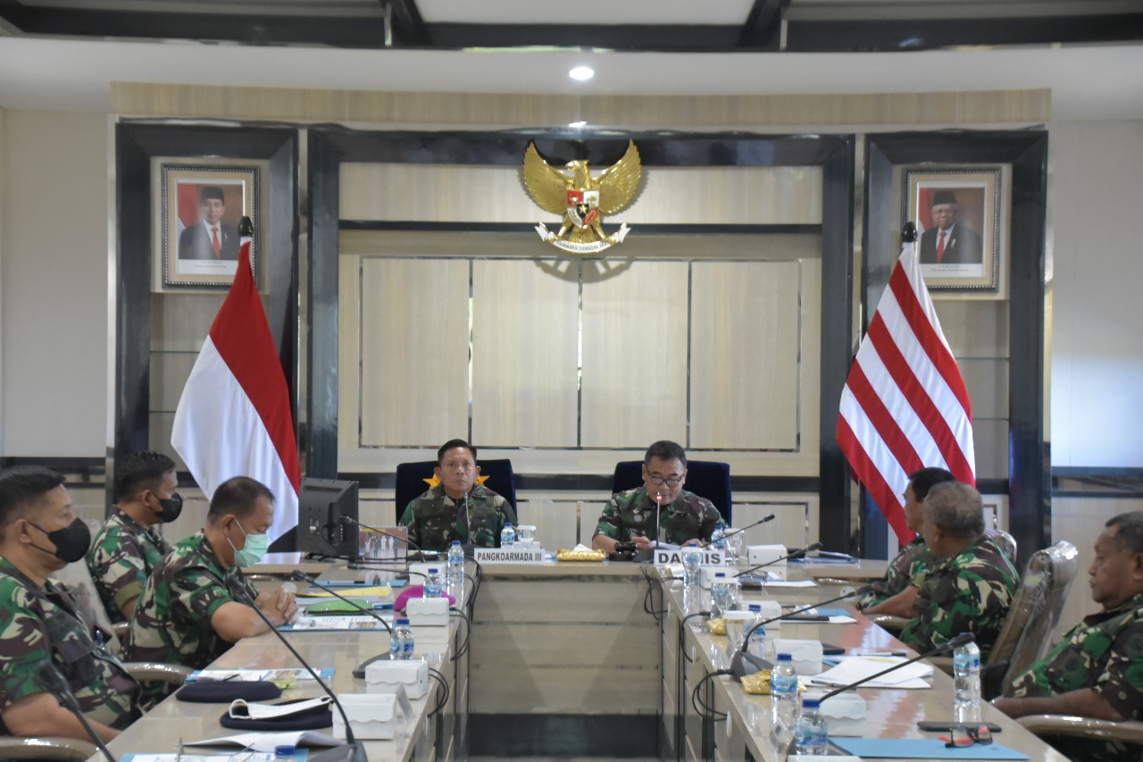 SORONG PAPUA BARAT | Pangkoarmada III besrta Seluruh Jajaran Koarmada III Siap Mendukung Kelancaran Tugas Tim Audit Itjenal yang Bertempat di Ruang Rapat Pangkoarmada III, Mako Koarmada III, Katapop Kabupaten Sorong Papua Barat, Panglima Komando Armada (Pangkoarmada) III, Laksamana Muda TNI Irvansyah, S.H., CHRMP., M.Tr. Opsla, mengikuti acara Pembacaan Taklimat Awal Audit Kinerja Itjenal TA 2022 oleh Irops Itjenal Laksamana Pertama TNI Nursyawal Embun. Senin (27/06/22)