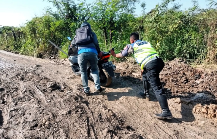 Melihat warga kesulitan melintas, kata Kapolres, Anggota Lantas Polsek Benda yang kebetulan Stanby di lokasi tersebut langsung merespon dengan membantu mendorong motornya agar bisa melintas.