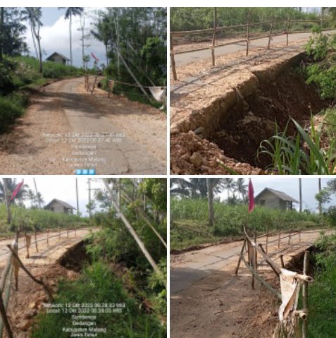 KAB. MALANG | Jalan penghubung dua dusun sumbersari – mulyosari desa sumberejo kec. Gedangan kab. Malang terlihat rusak parah, sehingga mengakibatkan warga yang mengendarai kendaraan sangat sulit melintas dan ada rasa takut di akibatkan samping jalan longsor yang belum di benai sampai sekarang.