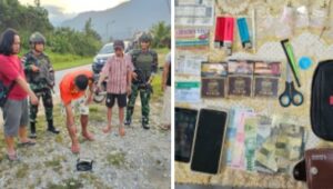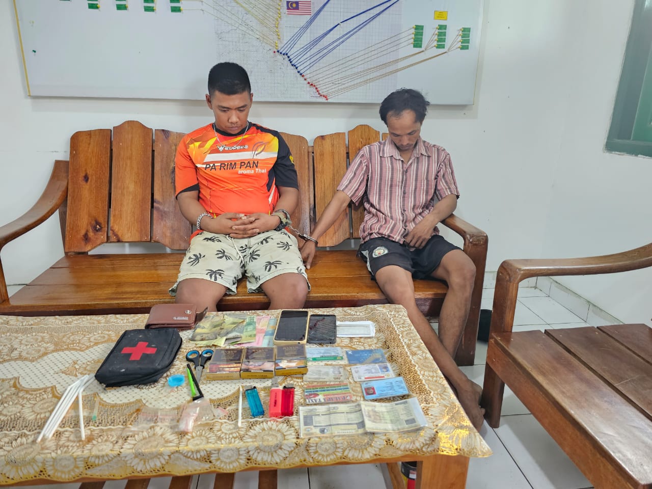 Pada saat dilakukan pemeriksaan terhadap 2 orang berinisial Mr dan Wf beserta kendaraan ditemukan potongan besi pembatas jalan di dalam mobil ukuran 1,5 m sebanyak 30 batang kemudian dari pada itu salah satu penumpang berinisial (Mr.) tiba-tiba melemparkan 1 tas kecil hitam yang kemudian deketahui oleh petugas lalu diperiksa isi tas tersebut hal hasil tas tersebut berisikan barang yang diduga Narkoba jenis Sabu sebanyak ± 10 mg dan alat hisap narkoba (Bong).