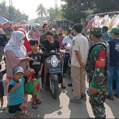 KRONJO, TANGERANG, BANTEN | Anggota Koramil 08/Kronjo Sertu Andri S dan dua personil lainya, bersama Polsek Kronjo dan Trantib PP Kec Kronjo terus lakukan pendisiplinan protokol kesehatan di wilayah teritorial Koramil 08/Krj, Kodim 0510/Trs.