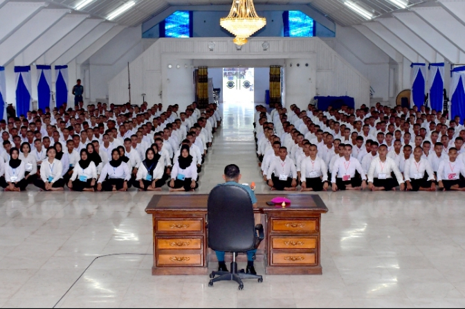 MAKASSAR – TNI AL, LANTAMAL VI | Jelang test Pantukhirda (Panitia Penentuan Akhir Daerah ) , Komandan Lantamal VI Makassar Brigadir Jenderal TNI (Mar) Amir Kasman, S.E., M.M, memberikan pengarahan kepada Calon Prajurit TNI AL yang terdaftar sebagai Calon Siswa (Casis) Calon Bintara (Caba) dan Calon Tamtama (Catam) PK TNI AL penerimaan Gelombang I TA 2023, bertempat di Gedung Sultan Hasanuddin Mako Lantamal VI, Kamis (23/02/2023)