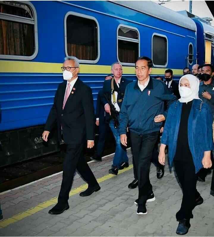 UKRAINA | Dari peron 4 Stasiun Przemysl Glowny di kota Przemysl, Polandia, pukul sembilan malam, Jokowi dan rombongan terbatas berkereta menuju Kyiv, Ukraina.