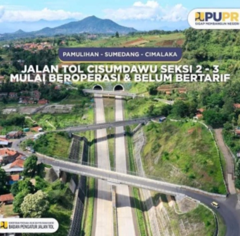 CILEUNYI | Ada kabar baik lagi nih Jalan Tol Cisumdawu Seksi 2 & 3 yang menghubungkan Pamulihan – Sumedang hingga ke Cimalaka sudah dibuka dan dapat dilewati pegendara.