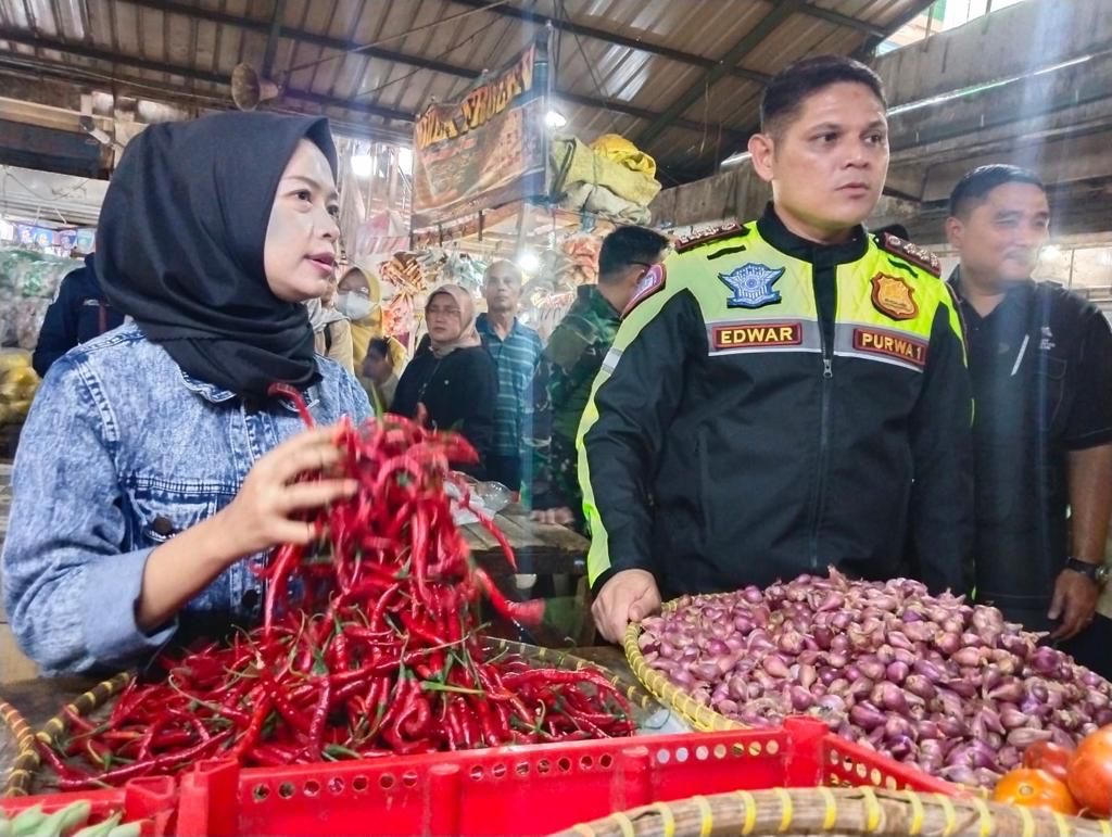 INFOINDONESIA – PURWAKARTA|Upaya mengantisipasi kenaikan harga dan ketersediaan stok pangan menjelang ramadhan 1444 Hijriah, Kapolres Purwakarta Polda Jabar AKBP Edwar Zulkarnain bersama Bupati Purwakarta, Anne Ratna Mustika dan Dandim 0619/Purwakarta, Letkol Andi Achmad Afandi serta Kepala Kejaksaan Purwakarta, Rohayatie melakukan sidak pasar tradisional di Kabupaten Purwakarta, Pada Jumat, 17 Maret 2023.