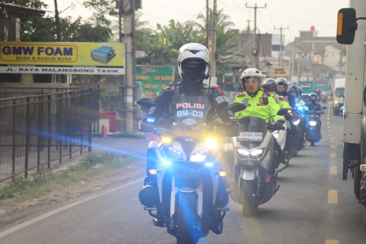 GARUT, JABAR | Polres Garut Polres Garut Polda Jabar bersama TNI, masih bersiaga di sana, memandu arus lalin yang terpantau padat mengarah Bandung dari Tasikmalaya.