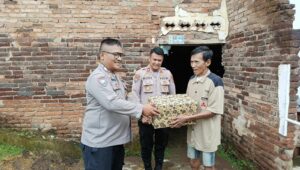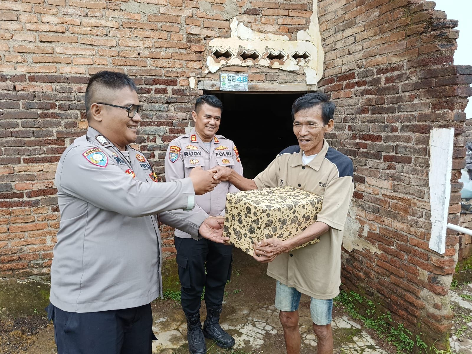 Kapolsek Sukahaji Polres Majalengka Polda Jabar AKP Rudy Djunardi bersama anggota Bhabinkamtibmas Bripka Waryo menyambangi fakir miskin maupun kurang mampu dan memberikan paket sembako berupa beras, telur, minyak goreng, tepung, susu dan sebagainya.
