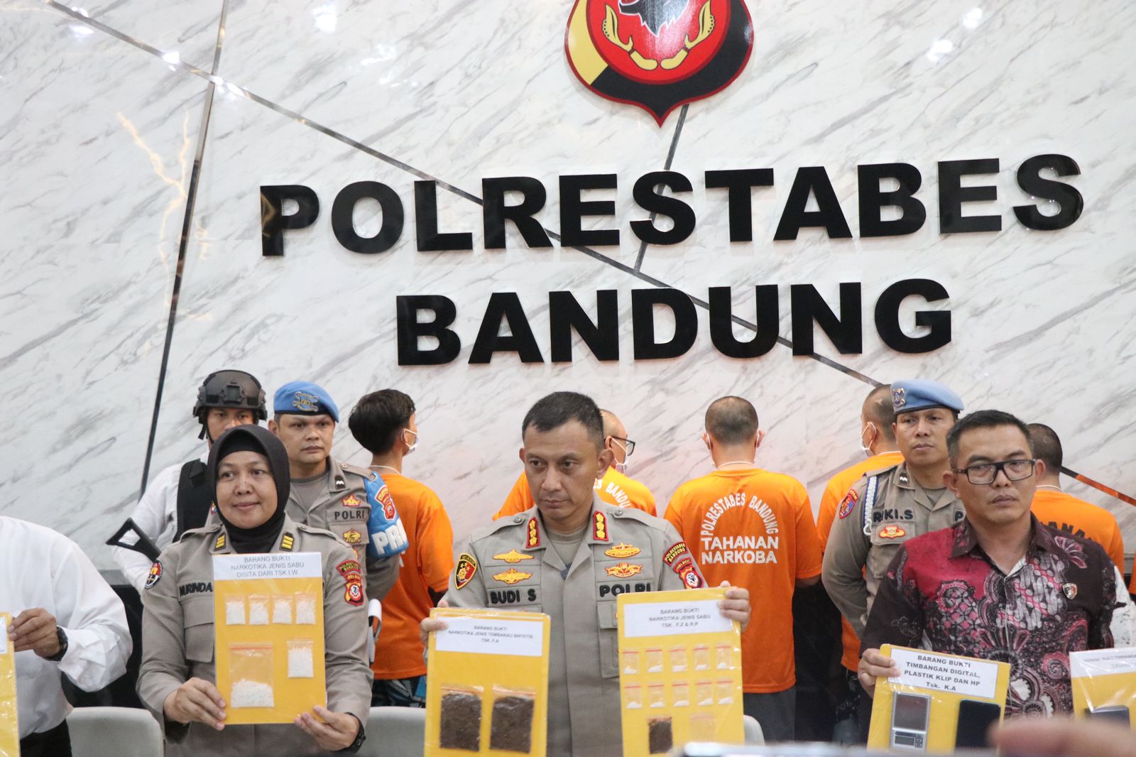 POLDA JABAR | Dalam satu pekan pada Mei 2023, Sat resnarkoba Polrestabes Bandung Polda Jabar, amankan delapan orang bandar narkoba. Dari kedelapan bandar tersebut, polisi amankan ratusan gram sabu-sabu.