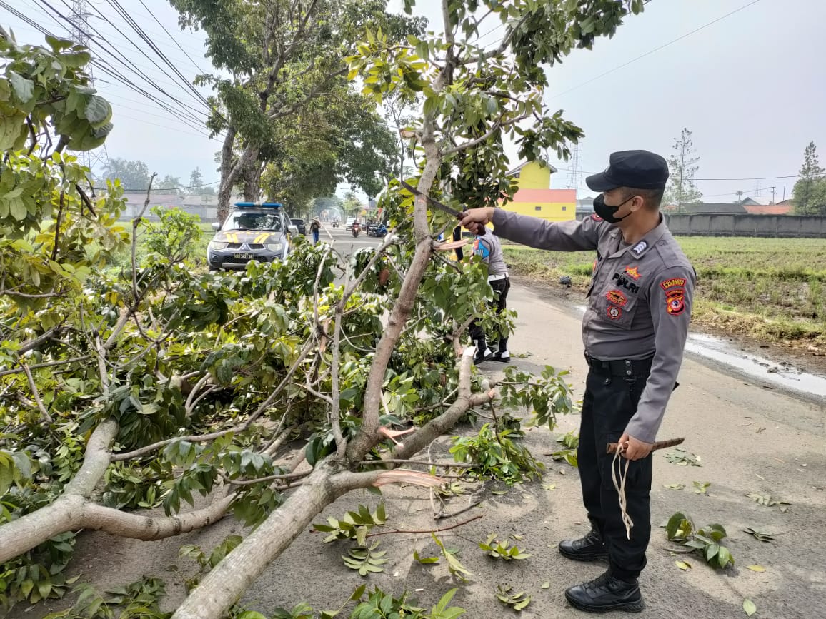 Polda Jabar yang dengan cepat merespon serta melakukan evakuasi pohon tumbang.