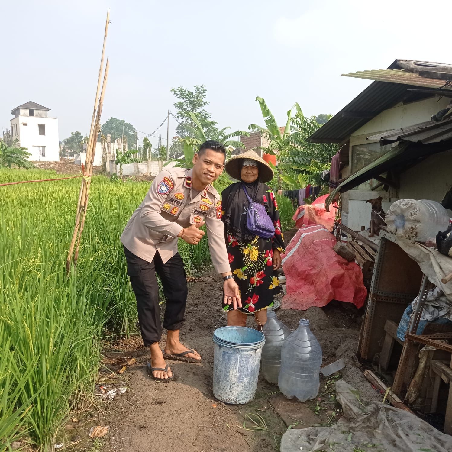 INFOINDONESIA – KAB.BANDUNG, JABAR | Sat Binmas Polresta Bandung Polda Jabar Ipda Didi Dwi Purnomo menyambangi masyarakat yang kurang mampu di wilayah Desa Soreang, Kecamatan Soreang, Kabupaten Bandung, Jawa Barat.