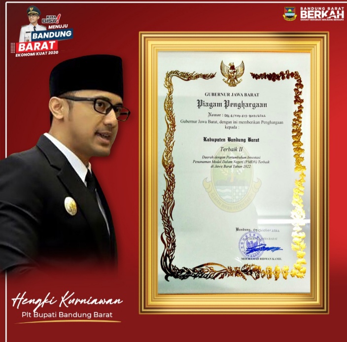 BANDUNG BARAT, JABAR | Bupati Kabupaten Bandung Barat Hengky Kurniawan, menyampaikan rasa syukurnya, karena Kabupaten Bandung Barat telah berhasil meraih Juara ke 2 Daerah dengan Pertumbuhan investasi terbaik di Jawa Barat tahun 2022. Senin, (10/10/2022).