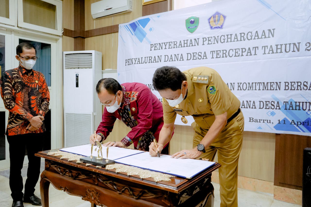 Setelah penyerahan penghargaan, Pemda Barru dan jajarannya kembali menandatangani Pernyataan Komitmen Bersama antara Pimpinan Perangkat Daerah untuk penyerapan anggaran, percepatan program kegiatan, belanja berkualitas (spending better), serta mendukung pemulihan ekonomi nasional.