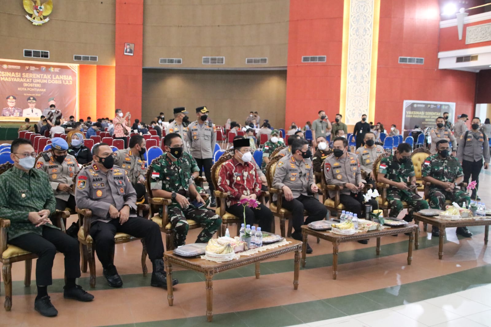 PONTIANAK, KALBAR | Kalemdiklat Polri Komjen Pol Rycko Amelza Dahniel meninjau secara langsung pelaksanaan Vaksinasi Serentak Se-Indonesia di Gedung Pontianak Convention Center (PCC), Jum’at (17/2).