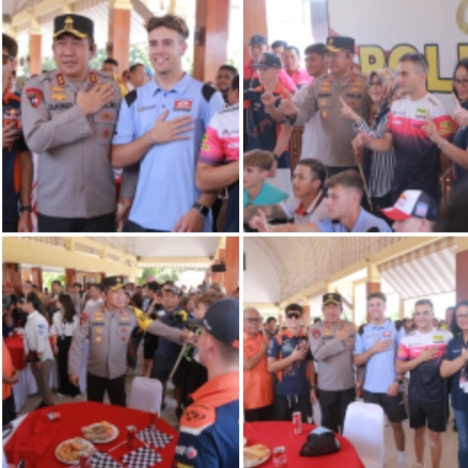 infoindonesiainews.com| MATARAM, NTB – Sejumlah Raider dari berbagai negara termasuk Indonesia yang akan menguji kemampuan di Pertamina Mandalika internasional Street Sircuit saat event Internasional MotoGP hadir di Tribun Bhara Daksa Polda NTB, Rabu (11/10/2023).