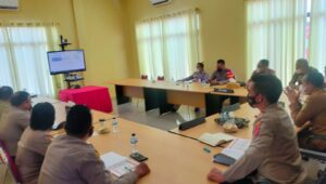 BATU BARA | Kapolres Batu Bara diikuti para Pejabat Utama Polres Batu Bara serta Satgas Gugus Tugas Covid-19 yang dipimpin Bupati Batu Bara Ir. Zahir, M.A.P laksanakan Zoom Meeting di Ruang Vidcon Polres Batu Bara (14/02/2022)