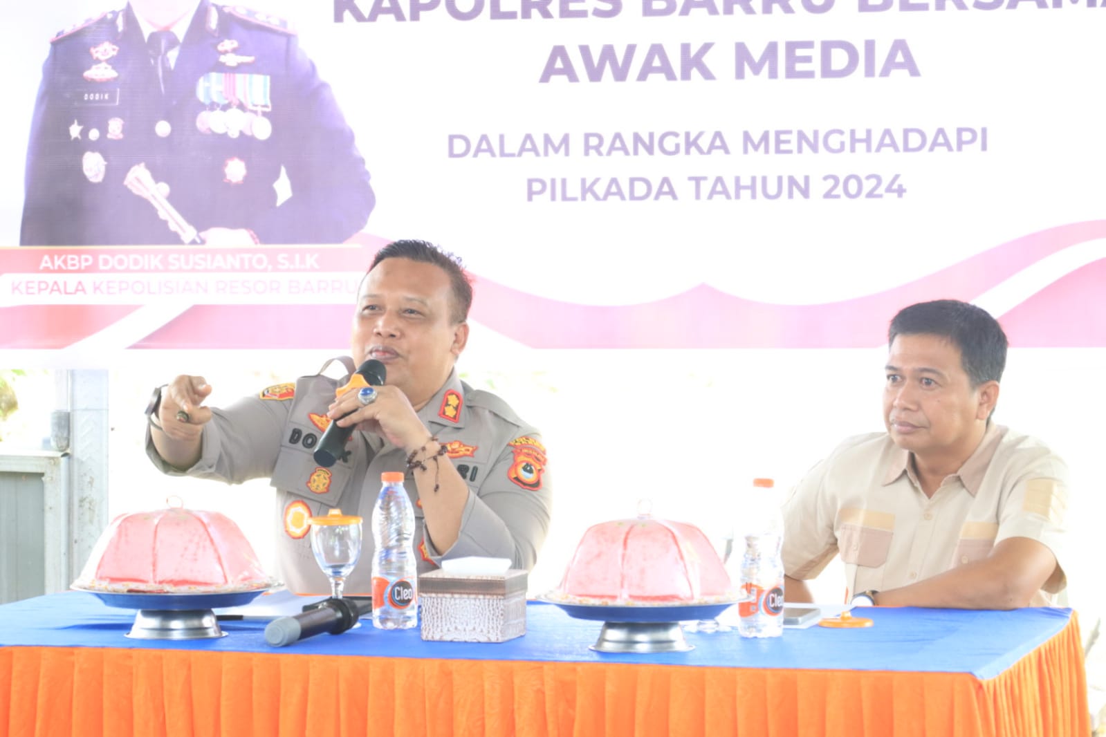 Saat bincang-bincang dengan awak media Kapolres Barru AKBP Dodik Susianto, mengatakan Pilkada semakin dekat, maka teman-teman diharapkan tetap melakukan pemberitaan secara profesional