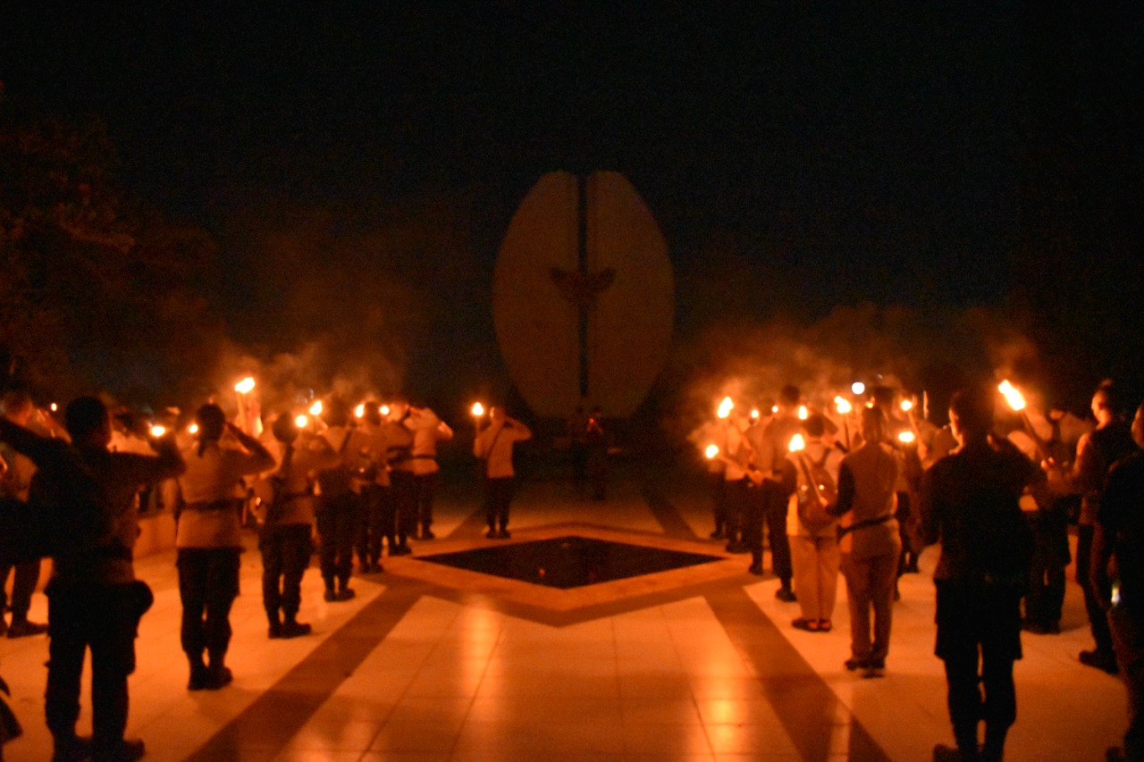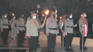 “Baru Sekitar pukul 22.10 Wib dilaksanakan upacara renungan suci di areal makam pahlawan Dharma Patria Jaya dengan diikuti personil RO SDM Polda Kalbar, Adapun selaku Inspektur Upacara yakni Bapak .Kapolres Kubu Raya AKBP JERROLD H.Y KUMONTOY,S.IK,M.Si dan komandan Upacara kabag SDM Kompol B. Sembiring, S.H“