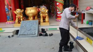 Dibawah pimpinan Kapolres Lebak AKBP Wiwin Setiawan,SIK,M.H didampingi Wakapolres Lebak Kompol Roby Heri Saputra,SH,SIK,M.H. dan Para PJU Polres Lebak bersama personil Bahu membahu membersihkan tempat ibadah seperti Masjid Al-A’rof Rangkasbitung, Gereja Santa Maria Tak Bernoda, Vihara Avalokitesvara Rangkasbitung.