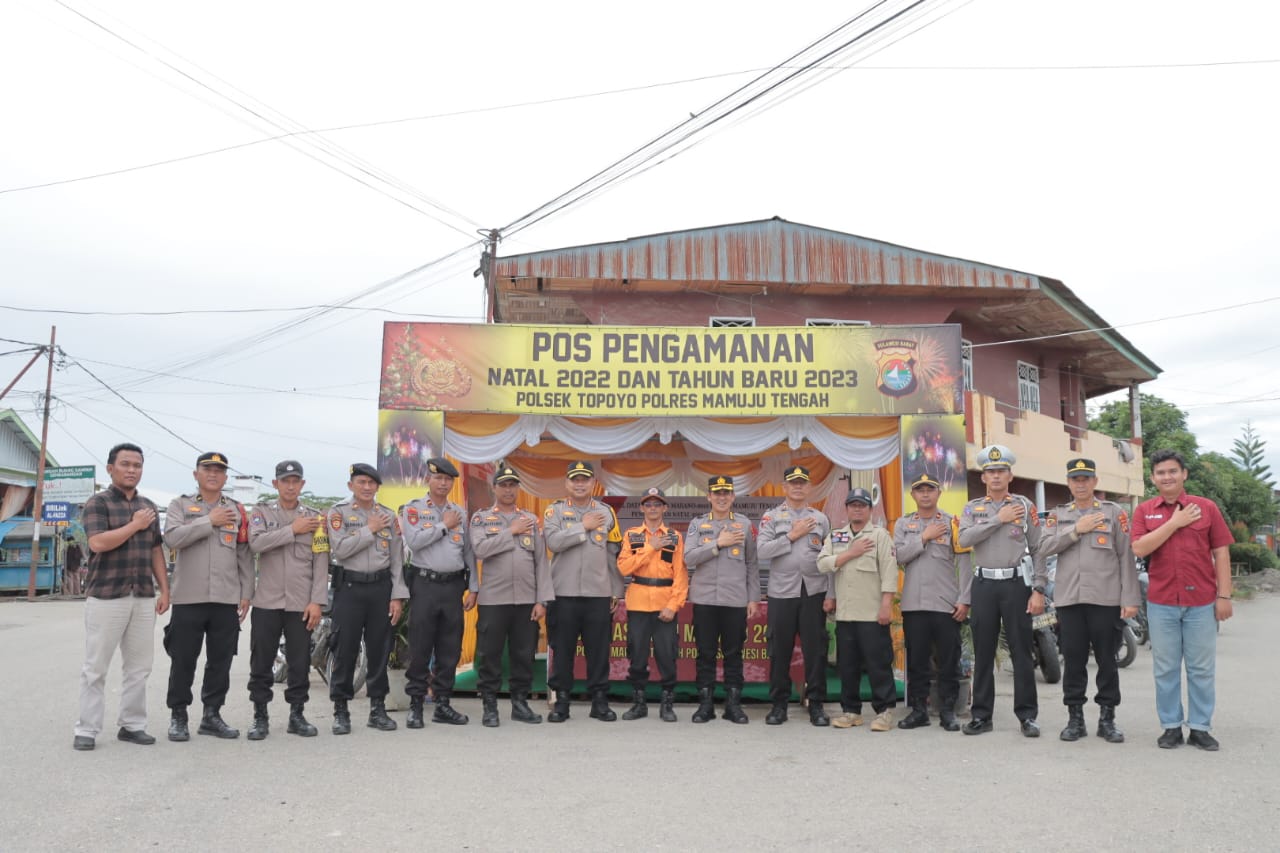 POLRES MAMUJU TENGAH | Kapolres Mamuju Tengah (Mateng) AKBP Amri Yudhy S, S.I.K., M.H dampingi kegiatan Pamatwil Polda Sulbar Kombes Pol. Drs. DR. Darwis Rincing, S.H., M.H dalam rangka melaksanakan pengecekan Pos Pengamanan (Pam) diwilayah hukum Polres Mamuju Tengah tepatnya di Pos Pam Kompleks Pasar Topoyo. Sabtu (24/12/2022).