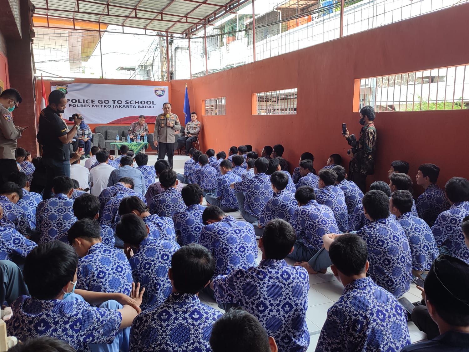 Oleh sebab itu dengan adanya program Police Go To School ini kami dari jajaran Polres Metro Jakarta Barat ingin memberikan edukasi dan dialog kepada para pelajar