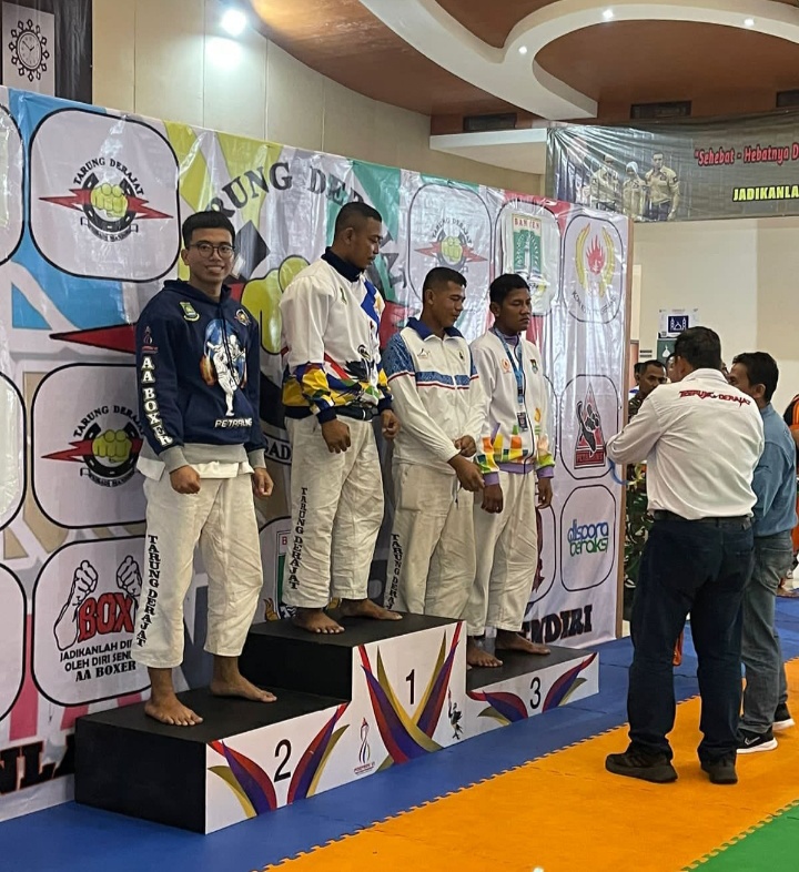 Kini, kembali anggota Sat Samapta Polres Metro Tangerang Kota Briptu Mahdin Ady Putra, berhasil meraih prestasi gemilang dengan menyabet piala medali emas kejuaraan Tarung Drajat Porprov IV Banten.
