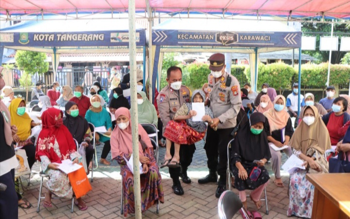 KOTA TANGERANG | Kapolres Metro Tangerang Kota Kombes Pol Zain Dwi Nugroho cek langsung pengamanan penyaluran bansos berupa bantuan langsung tunai (BLT) Bahan Bakar Minyak (BBM), bantuan pangan non tunai (BPNT) Sembako dan PKH tahun 2022 dari Kemensos RI di Kelurahan Gerendeng, Karawaci. Kamis (01/12/2022).