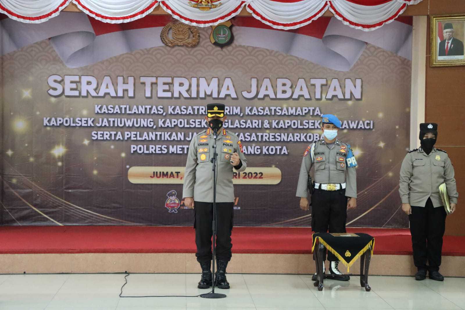 Hal ini disampaikan langsung oleh Kapolres Metro Tangerang Kota Kombes Pol Komarudin, S.I.K., M.M., kepada awak media didalam aula serba guna Mako Polres Metro Tangerang Kota. ” Kapolres mengatakan, setidaknya ada 7 (tujuh) pejabat yang diserah-terimakan atas atensi pimpinan Kapolda Metro Jaya Irjen Fadil Imran, M.Si.